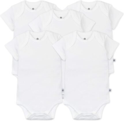 Price: (as of – Details) HonestBaby 5-pack Short Sleeve Bodysuits One-piece 100% Organic Cotton for Infant Baby Girls Package Dimensions