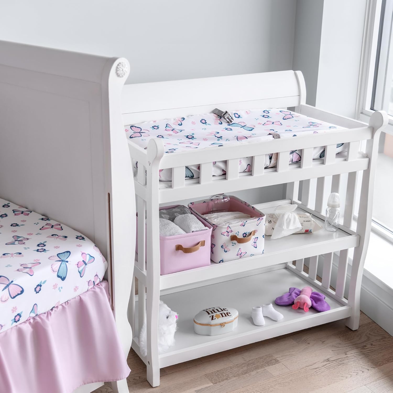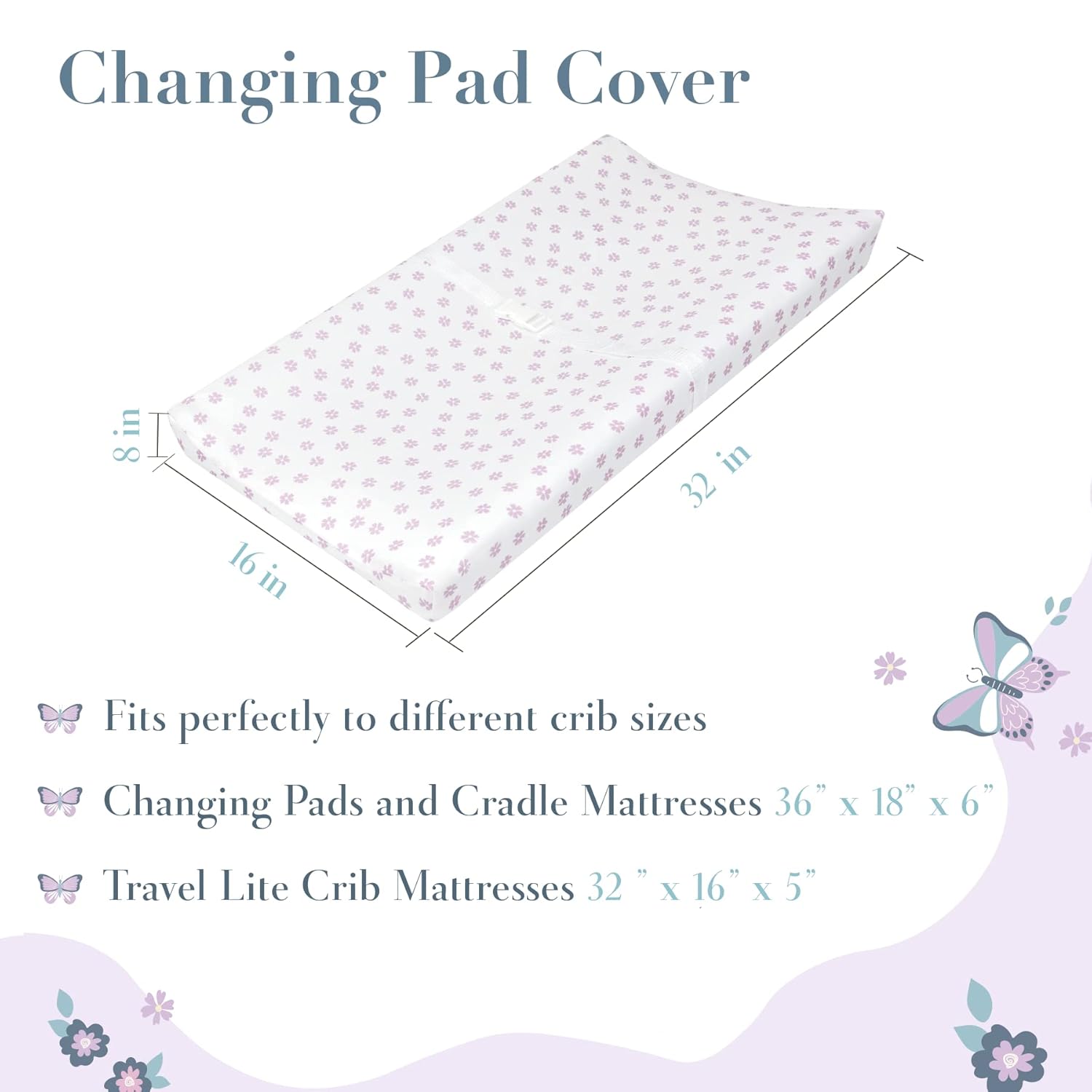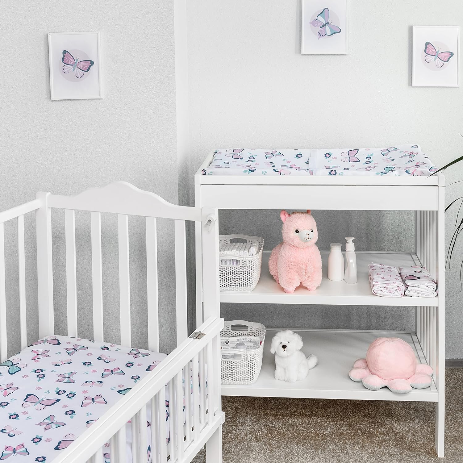 100% Cotton Changing Pad Cover for Baby Girls, Floral – Breathable Bassinet, Mini Crib Mattress Fitted Sheets – Butterfly Blossom, 32″x16″ with 8″ Deep Pocket, White-Light Pink, 2 Pack