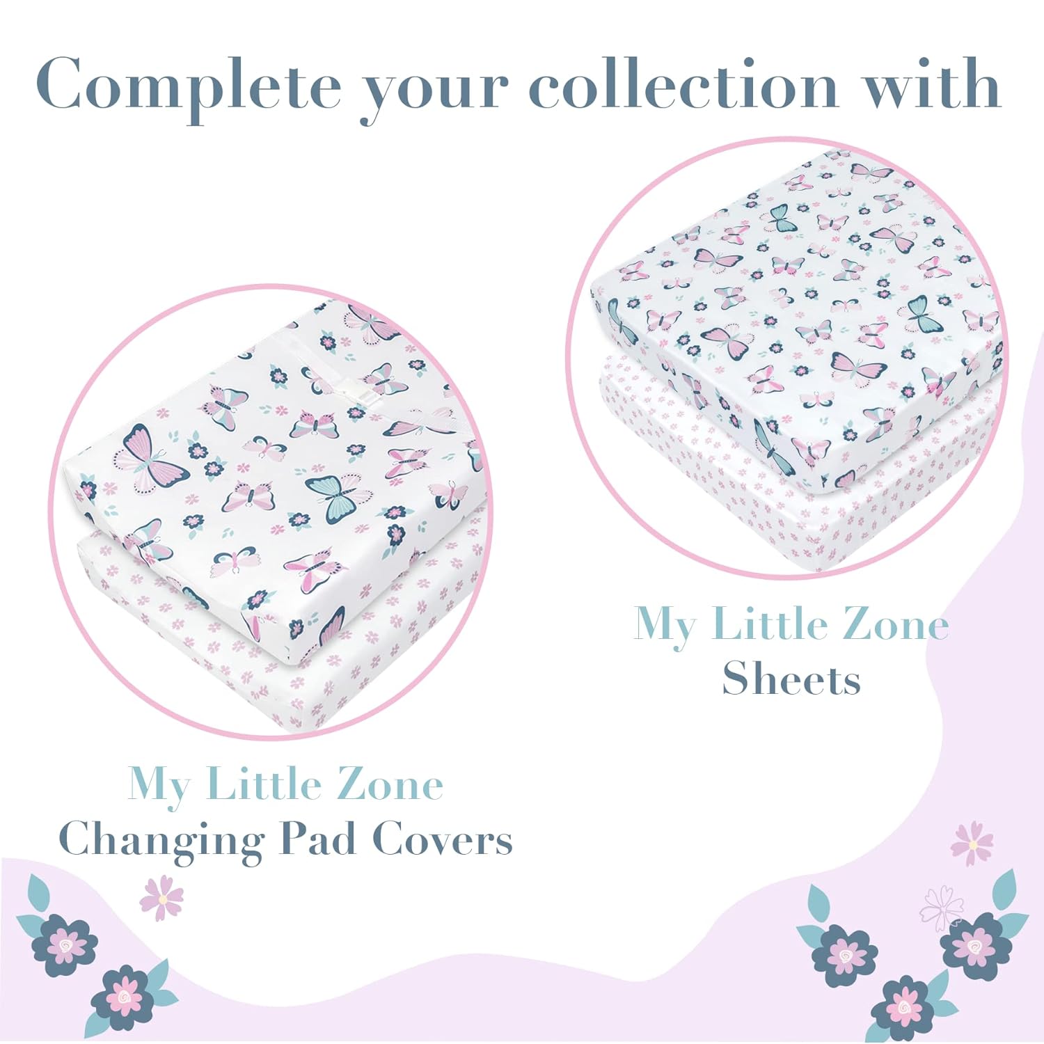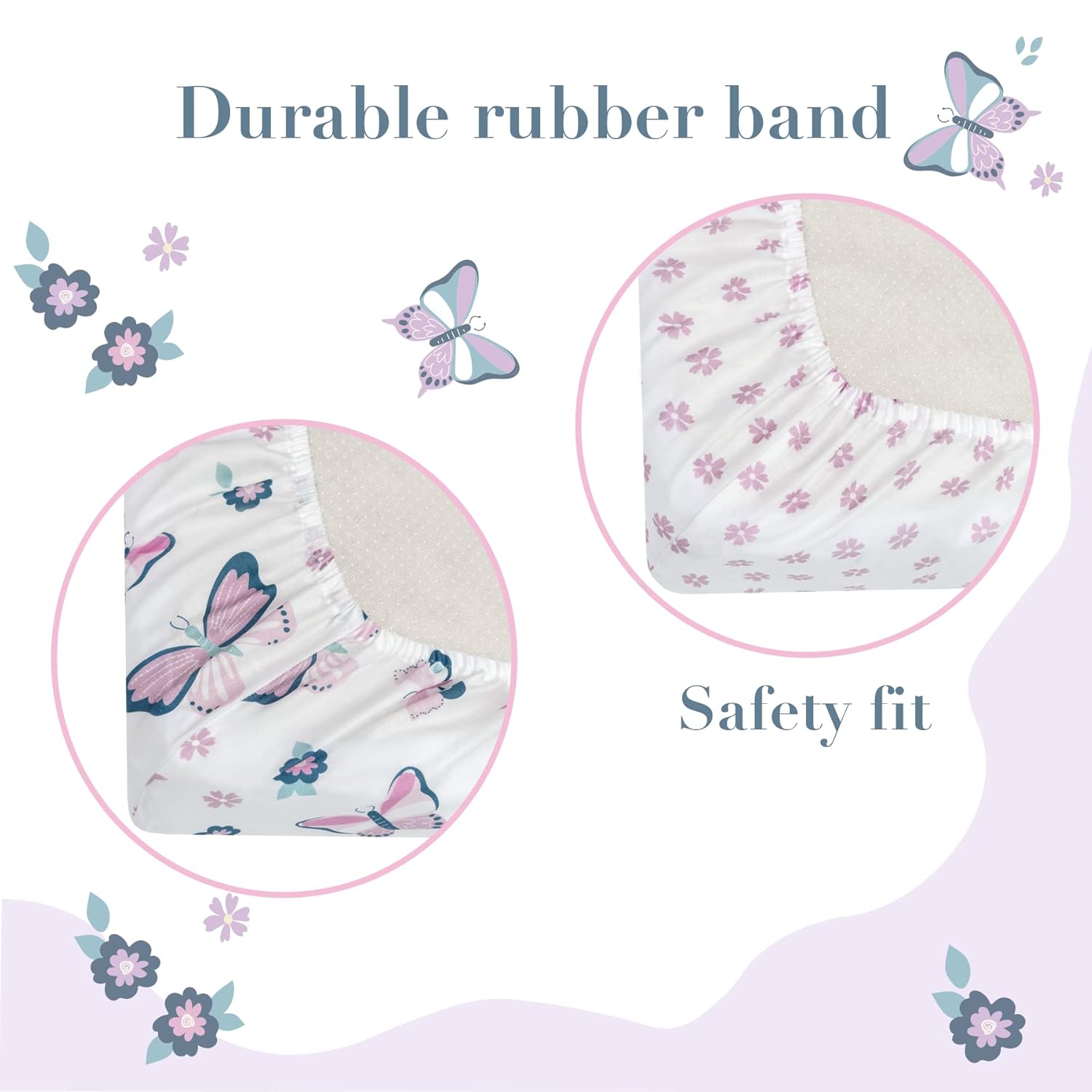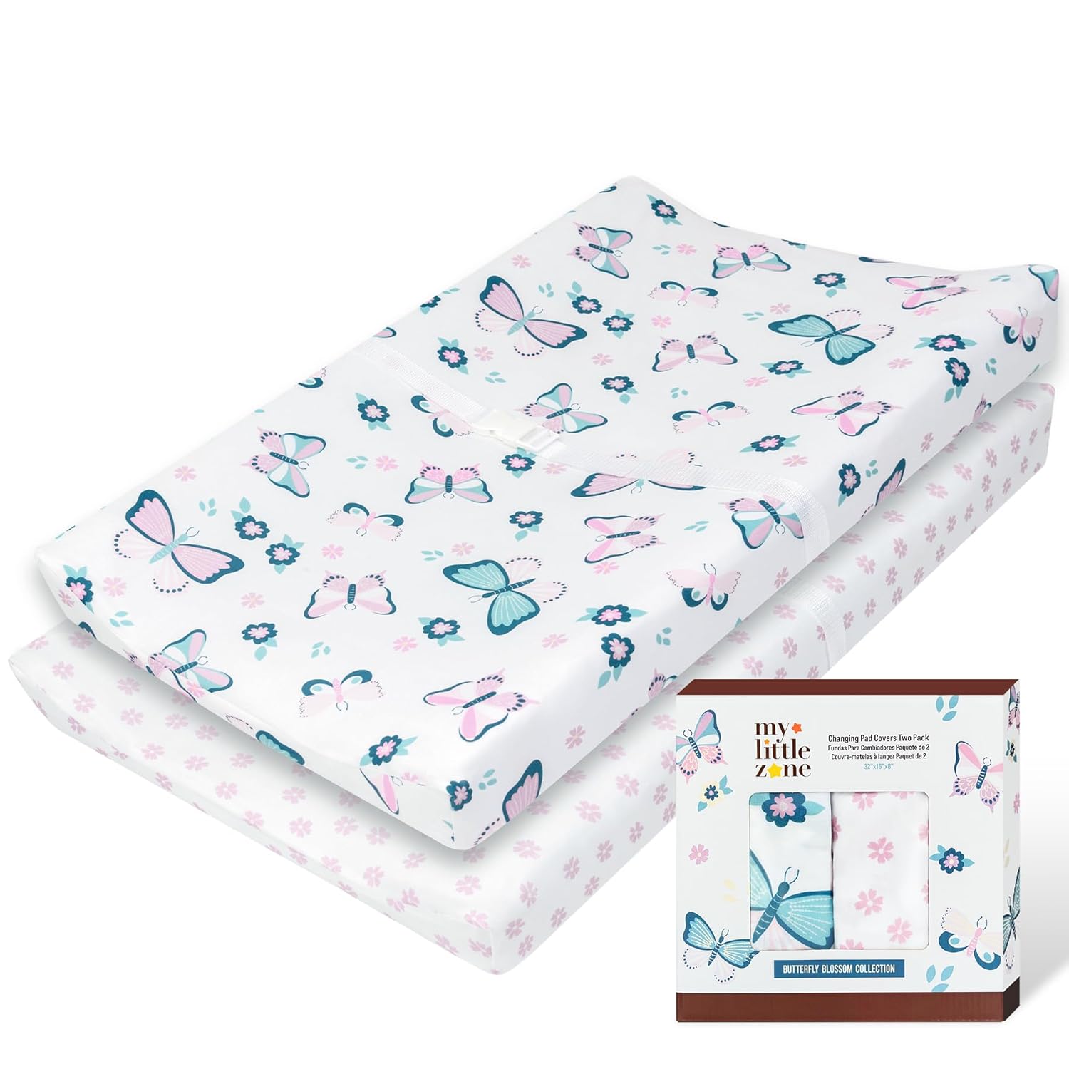 100% Cotton Changing Pad Cover for Baby Girls, Floral – Breathable Bassinet, Mini Crib Mattress Fitted Sheets – Butterfly Blossom, 32″x16″ with 8″ Deep Pocket, White-Light Pink, 2 Pack