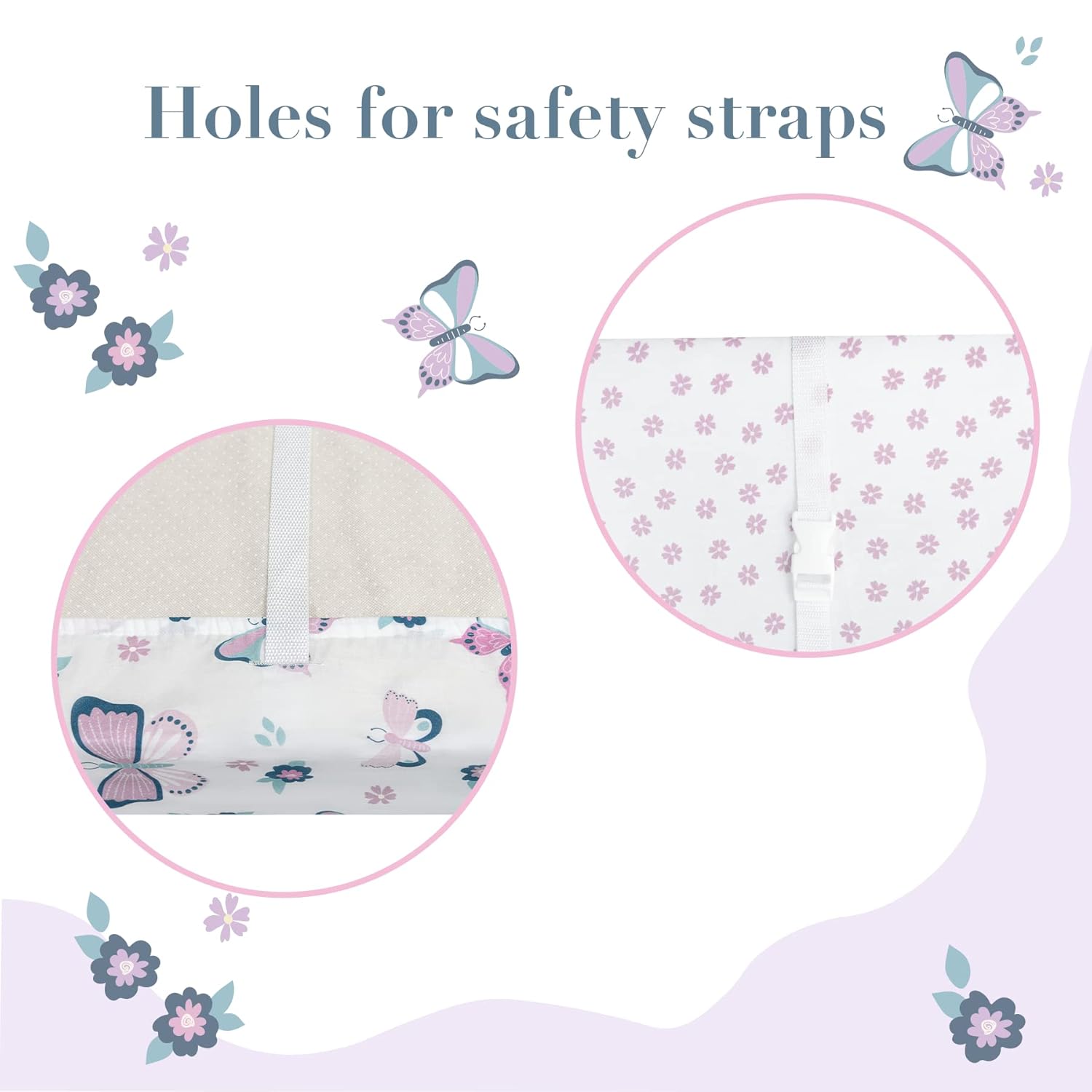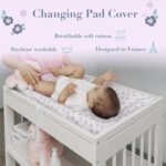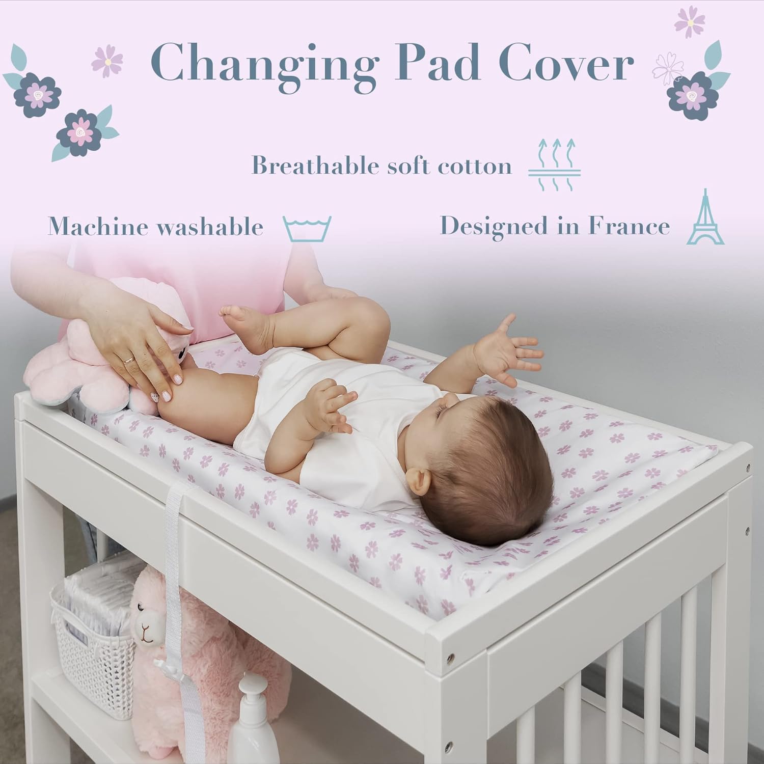 Designed in France, beautiful butterflies and pink lily flowers on these changing pad covers for girls. This cute and playful design will bring joy to your little one