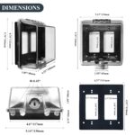 EXTRA LARGE INTERNAL SPACE: 2-Gang outlet cover box With more internal space than other childproof outlet covers, it can accept almost all electrical plugs. The interior dimensions of the outlet cover are 4.53″ high x 4.35″ wide x 2.52″ deep, which is deep enough to accommodate plugs and adapters for cell phones and game consoles