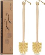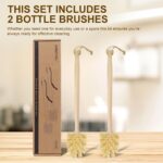 2-Pack Natural Wooden Bottle Brush with Sisal Bristles, Long Handle Bottle Brush Cleaner for Wide Mouth Jars, Water Bottles, Cups, Glasses, Baby Bottles (Non-Scratch)