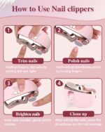 【2 IN 1 ELECTRIC NAIL CLIPPER】Our innovative electric nail clipper combines trimming and polishing in one convenient device. With hidden blades and precision cutters, it ensures safe and comfortable nail care, ideal for babies as well. The clipper includes a nail chip storage function for effortless cleanup, and a cleaning brush for easy maintenance.
