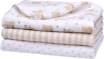3 Pack Cotton Muslin Swaddle Blankets for Baby, 40″ x 36″, Lightweight, Breathable, Tan, (Little Me Bingle Bear)