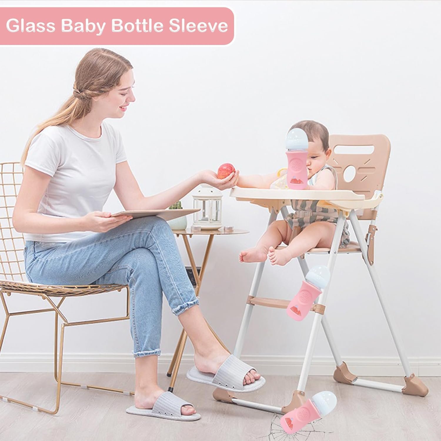Dishwasher Safe: The glass baby bottle sleeve is made of silicone material and is easy to clean. You can wash them with water or place them in the dishwasher or sterilizer for cleaning