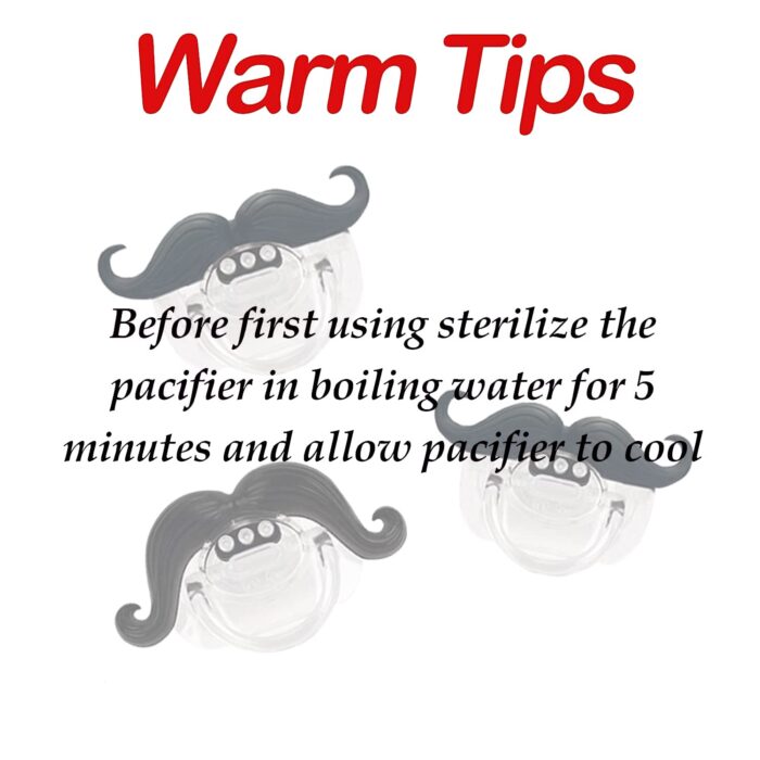 ???? 【Mustache Pacifiers】: Pacifier Size: 3 X 1.5 inches (L X W) And nipple is 1.1 X 0.7 inches (L X W). These BPA free sterilizing pacifier may be a little large for newborn baby