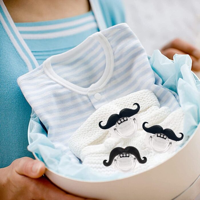 ???? 【Pacifier Design】: Cute baby pacifiers designed with mustache make them a perfect baby shower gift for babies, our orthodontic pacifiers help ensure natural oral development