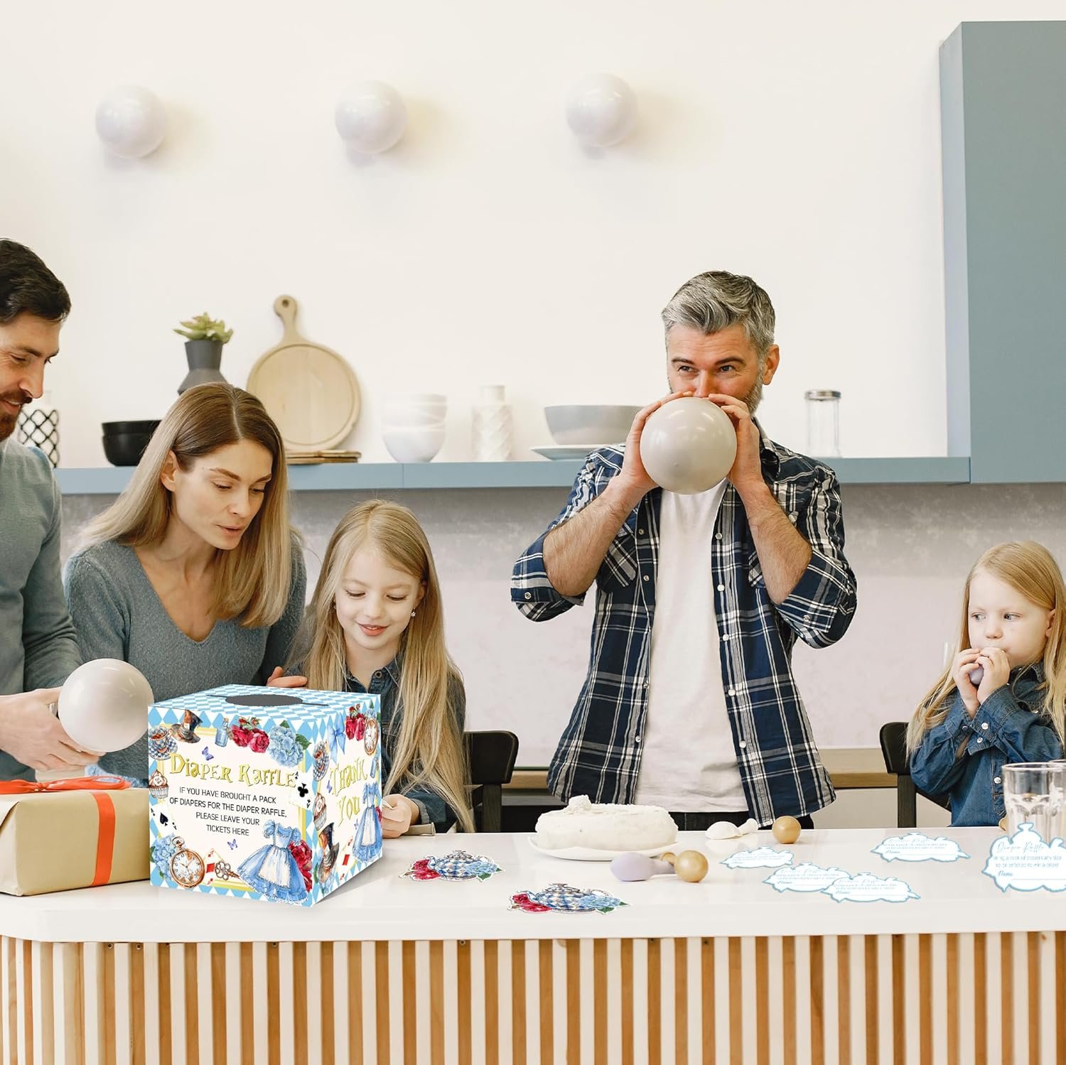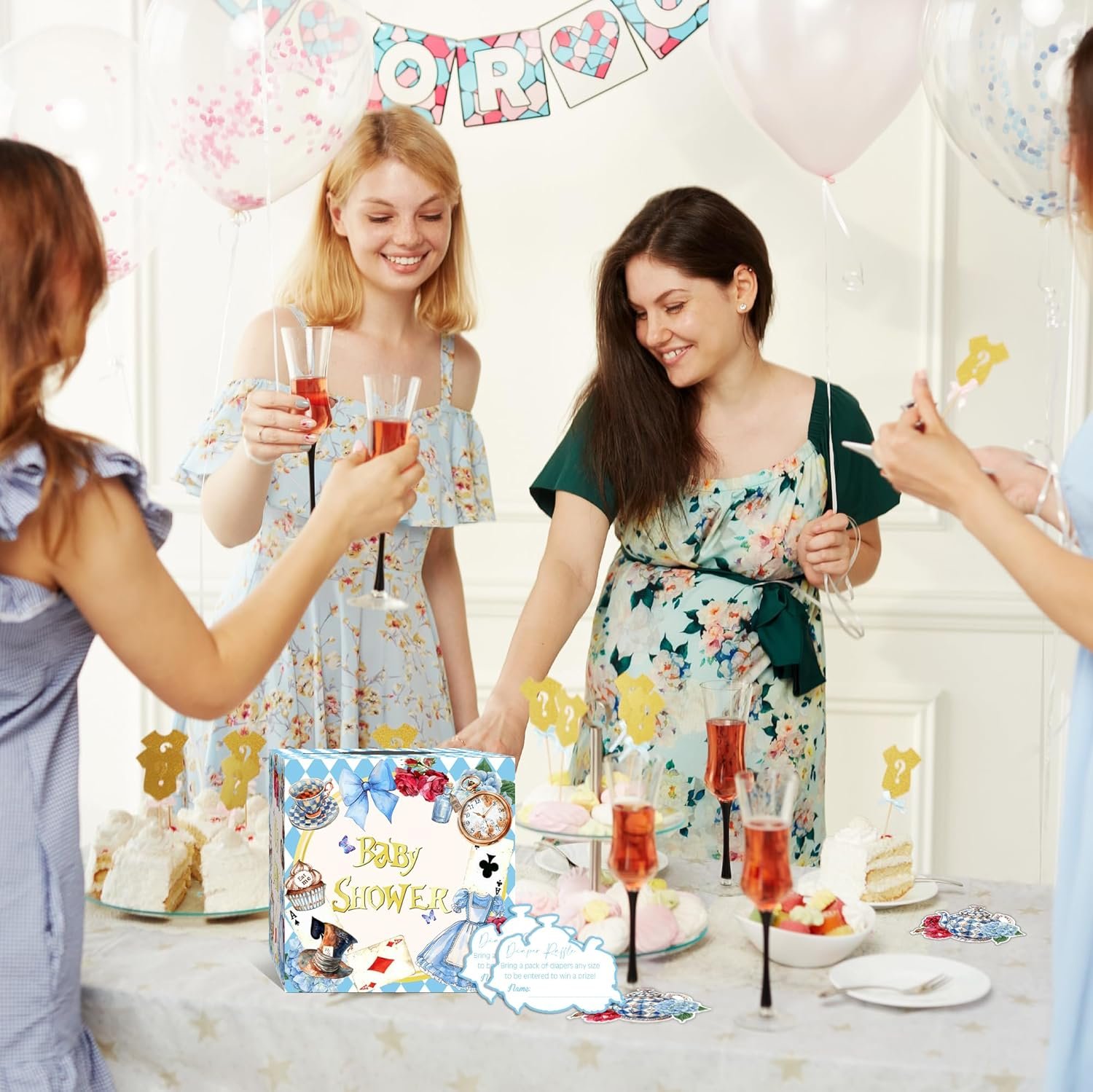 Perfect for baby showers, gender reveals, and Wonderland-themed events, this diaper raffle game set is a must-have for parents-to-be who want to make their special day even more magical!