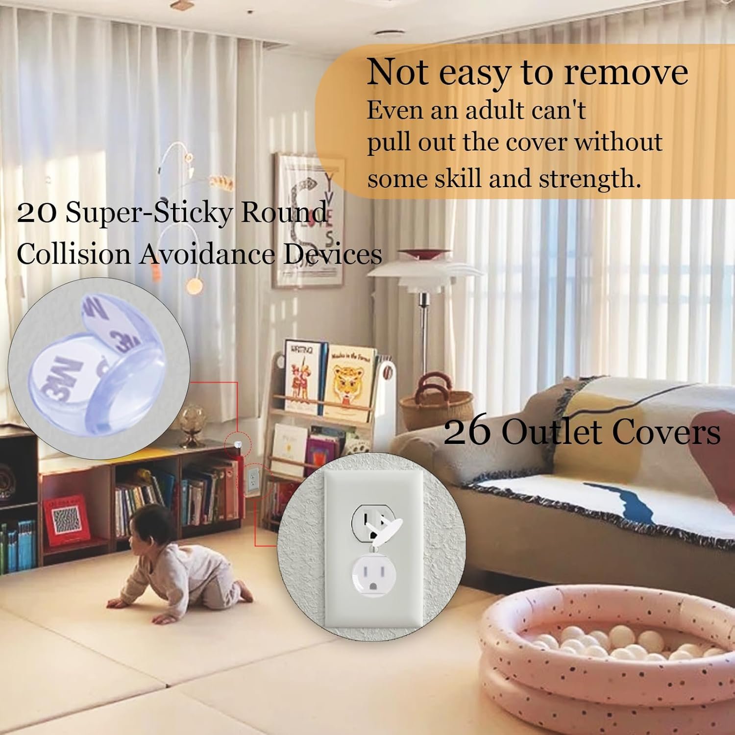 【Outlet Covers & Corner Guards】 In addition to keeping kids safe, we also want to protect their desire to explore. The round corner protectors are highly adhesive and not easy to come off, while Outlet Covers are suitable for both two- and three-hole sockets and cannot be easily removed even by adults!