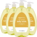 Four 27.1-fluid ounce bottles of Amazon Basics Tear-Free Baby Hair and Body Wash