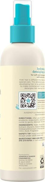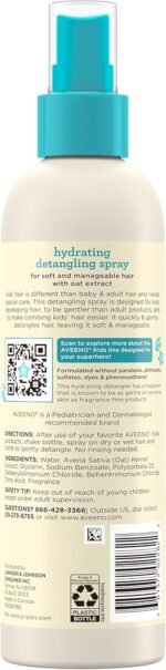 Aveeno Kids Hydrating Detangling Spray with Oat Extract, Quickly & Gently Detangles Kids’ Hair, Tear-Free & Suitable for Skin & Scalp, Light Fragrance, Hypoallergenic, 10 fl. oz