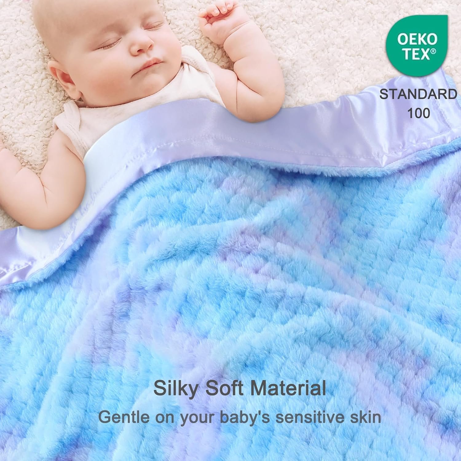 Dual-Sided Comfort: Designed with both beauty and comfort in mind, Our baby blanket features a soft fluffy fuzzy front with charming tie-dye prints and a luxury silk silky satin back in a solid color. It’s great for cuddles, soothing and baby’s sensitive skin
