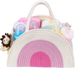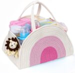 Baby Diaper Caddy Organizer, Baby Basket for Diapers and Baby Wipes, Newborn Essentials for Boys and Girls, Gift for Baby Shower,Rainbow Pink