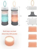 4-layer design: Stackable – 4 compartments can be combined in different order and any quantities, can also be taken separately.You can put quantity of milk powder to be taken at one time in each layer box, you can carry 4 times of milk powder for baby outdoor need, very convenient and practical.