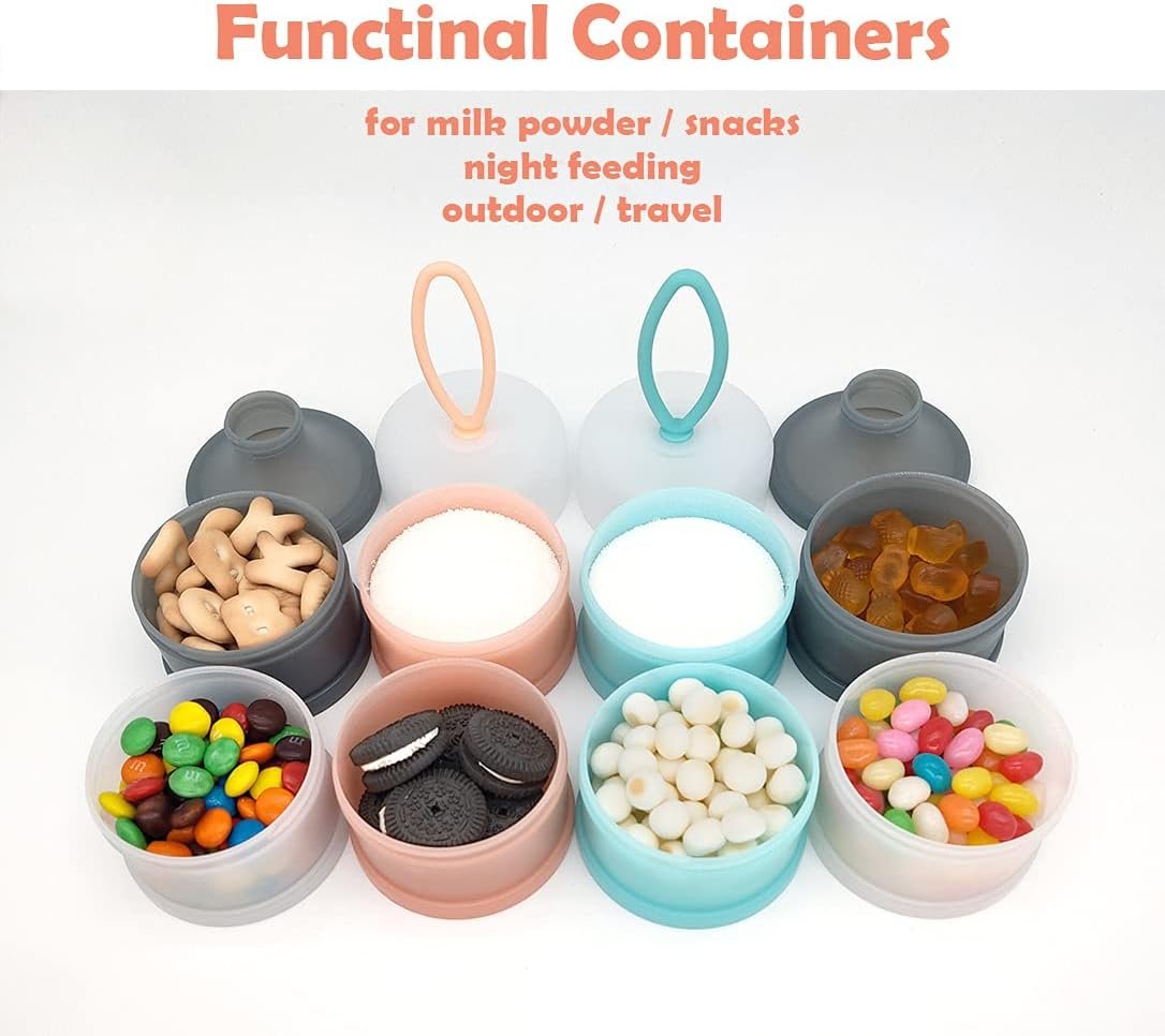Mutil-function: This baby formula container/ baby snack container can be used to storage milk powder, fruits, baby snacks, baby food, perfect for storing oatmeal, cornflour, nuts, candy and more food, and accessories such as pacifiers, nipple shields etc.