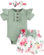Baby Girl Clothes Newborn Infant Outfit Ruffle Romper and Short Pants Clothing Sets for Summer Spring