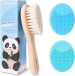 Baby Hair Brush and Cradle Cap Brush Set Goat Hair Bristles Brush 2 Pieces Silicone Cradle Cap Brushes Wood Handle Newborn Brush Kit for Newborns and Toddlers 3 Packs