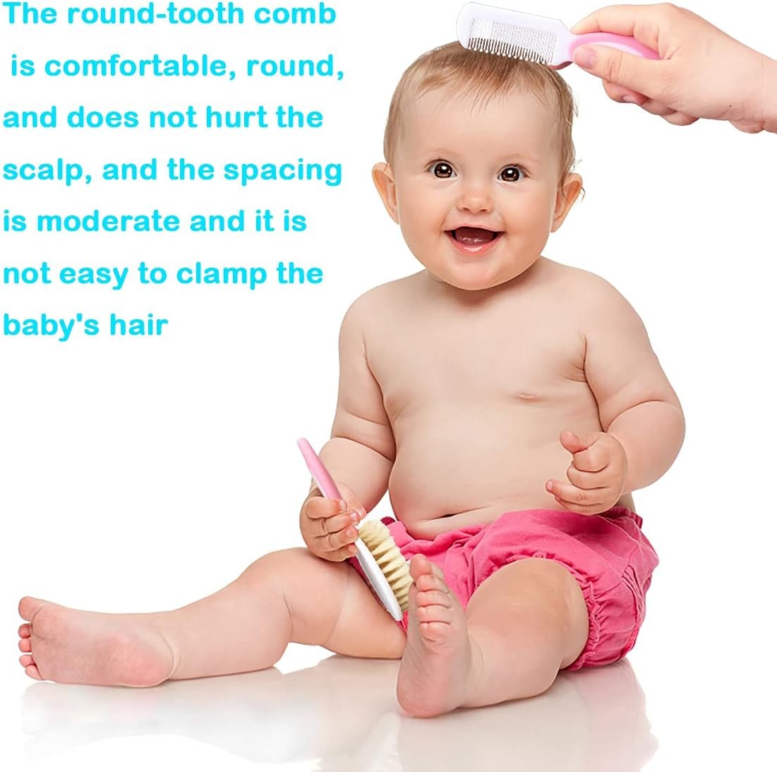 BABY HAIR BRUSH:Soft goat bristles prevent static and are very gentle on your baby’s soft spot