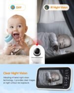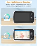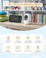 Baby Monitor with Camera, 5” Screen, Remote Pan-Tilt-Zoom, Temperature Monitoring, Lullabies, and Night Vision – 1000ft Range, VOX, No WiFi, 2-Way Talk