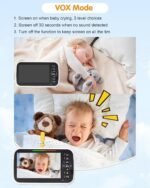 VOX Mode for Energy-Efficient Monitoring: The VOX (Voice Activation) mode automatically activates the screen when it detects sound from your baby, saving battery power. The screen will automatically turn off after 30 seconds of silence, making it energy-efficient while still keeping you connected.