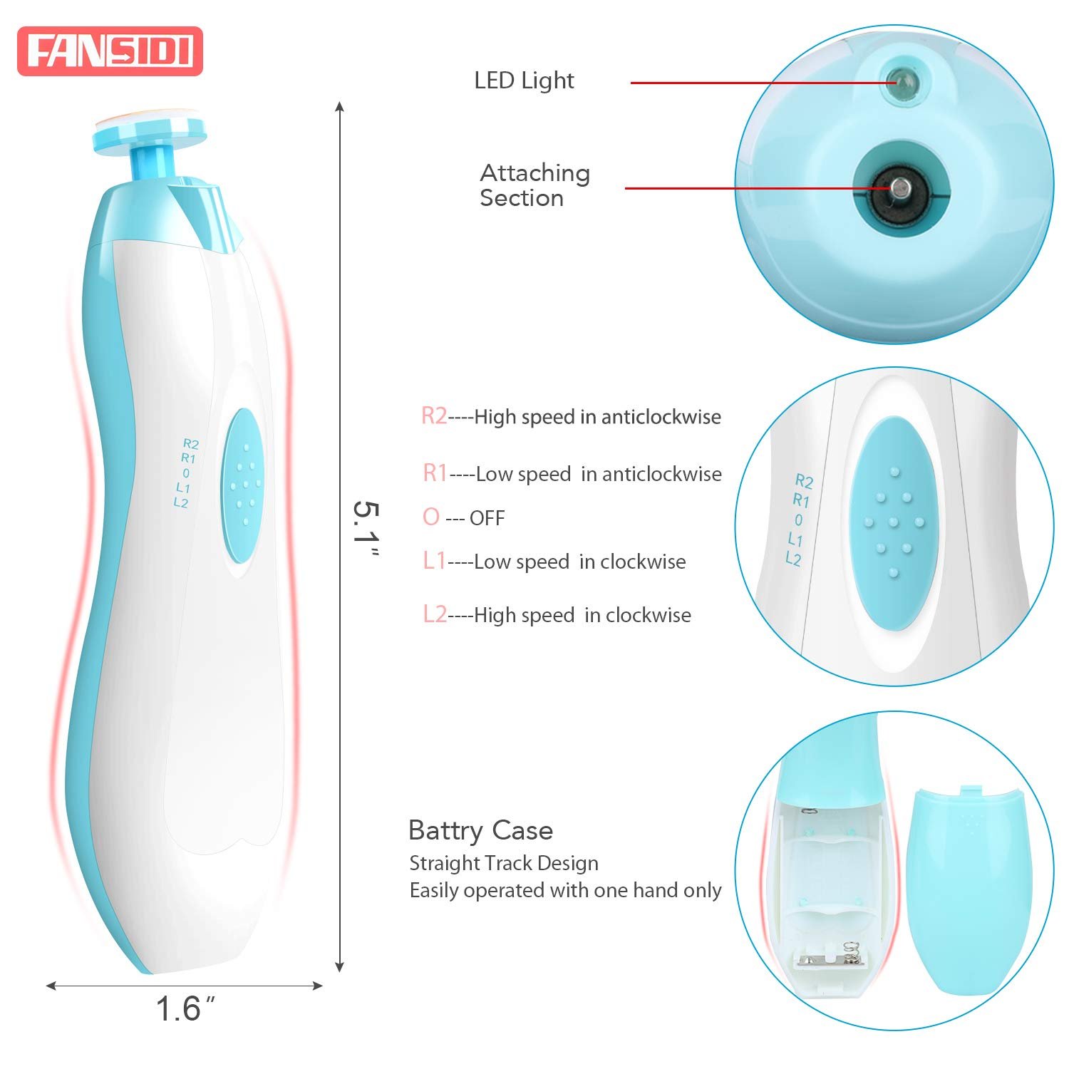 ♥SAFE BABY NAIL CARE TOOL – Fansidi baby electric nail file is safely and quickly trim and polish little toenails and fingernails when it works in a electric grinding way instead of traditional cutting way, won’t damage cuticles or soft nail beds.