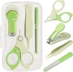 Baby Nail Clippers,4-in-1 Infant Nail Safety Care Set,Baby Pedicure Tool Include ;Baby Nail Clippers,Baby Nail Scissors, Nail File,Tweezers, Suitable for Newborn, Infant Toddler Big Kid/Green
