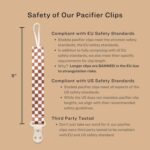 Safety is paramount for every parent, and we share that commitment. Our clips have undergone rigorous third-party testing to meet not just US but also EU safety. Our binky holder is a safer alternative to any silicone or wooden pacifier clip.