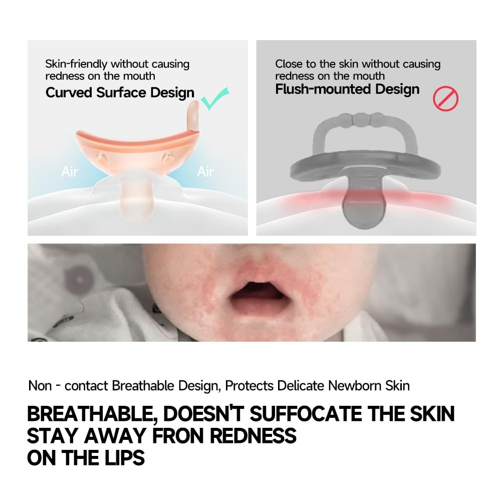 KIND TO SKIN: The outward curve keeps the pacifier off their delicate skin, providing plenty of room for their nose, chin, and cheeks.