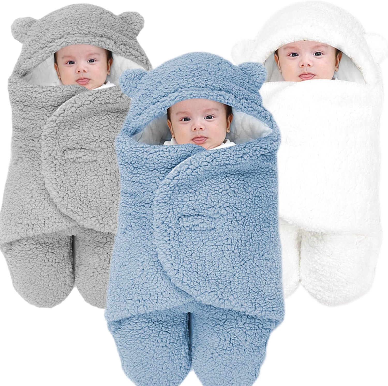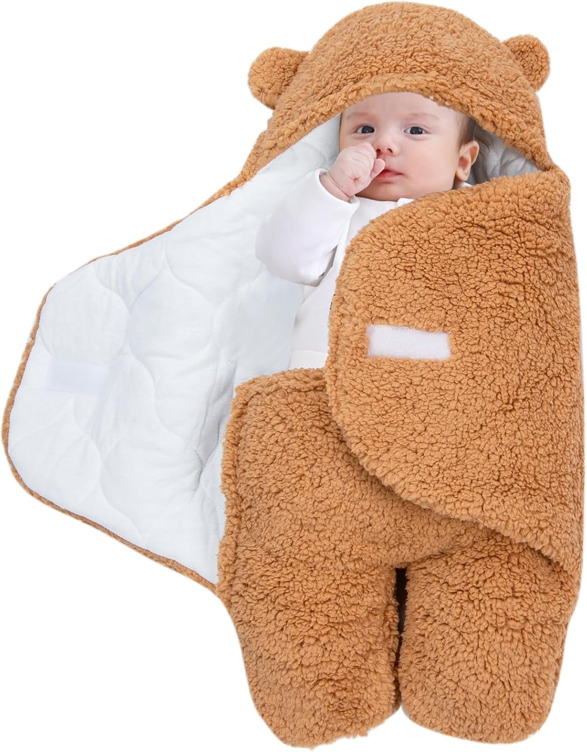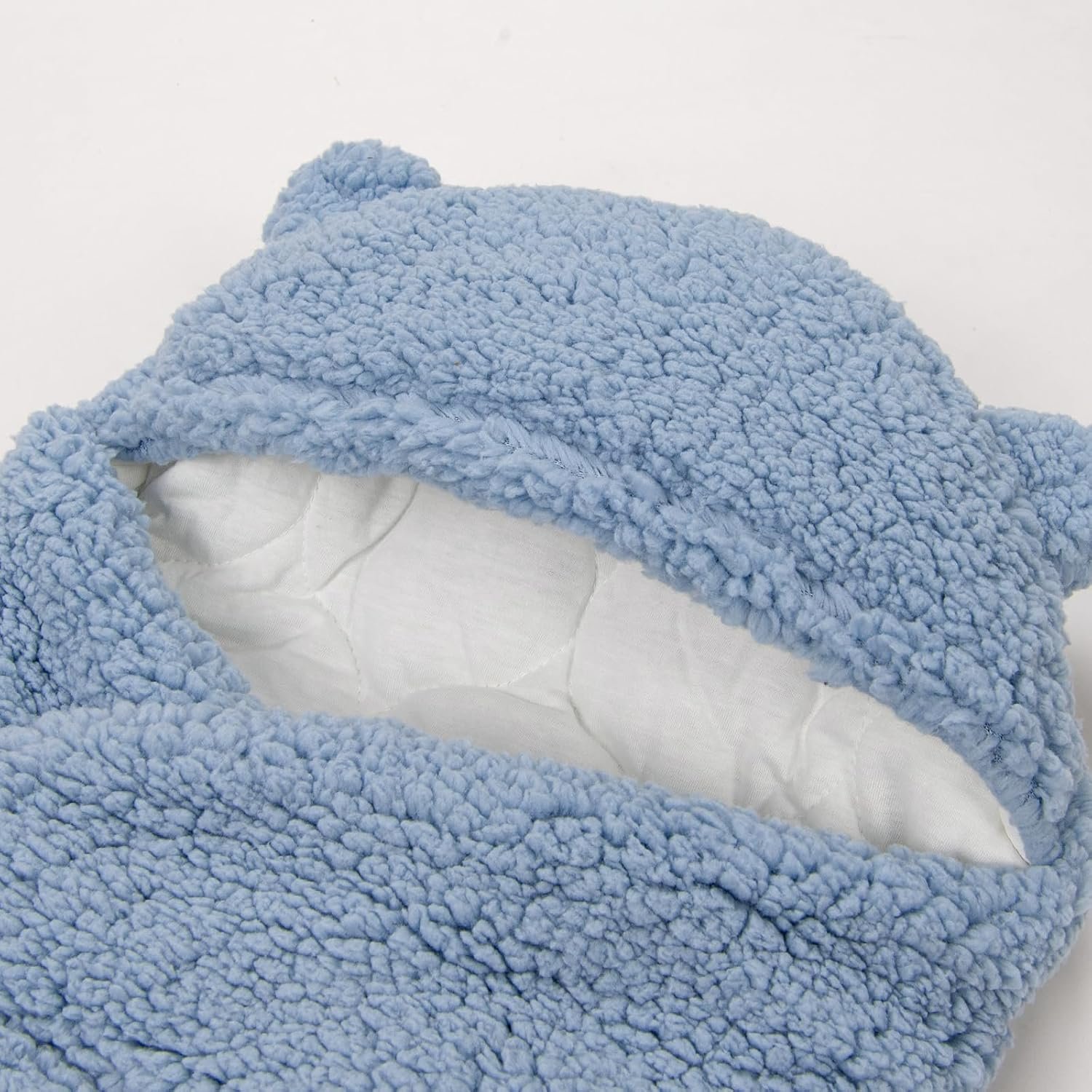 COZY DESIGN: Adorable bear-themed hooded swaddle blanket made with ultra-soft sherpa fleece exterior and smooth white inner lining for maximum comfort