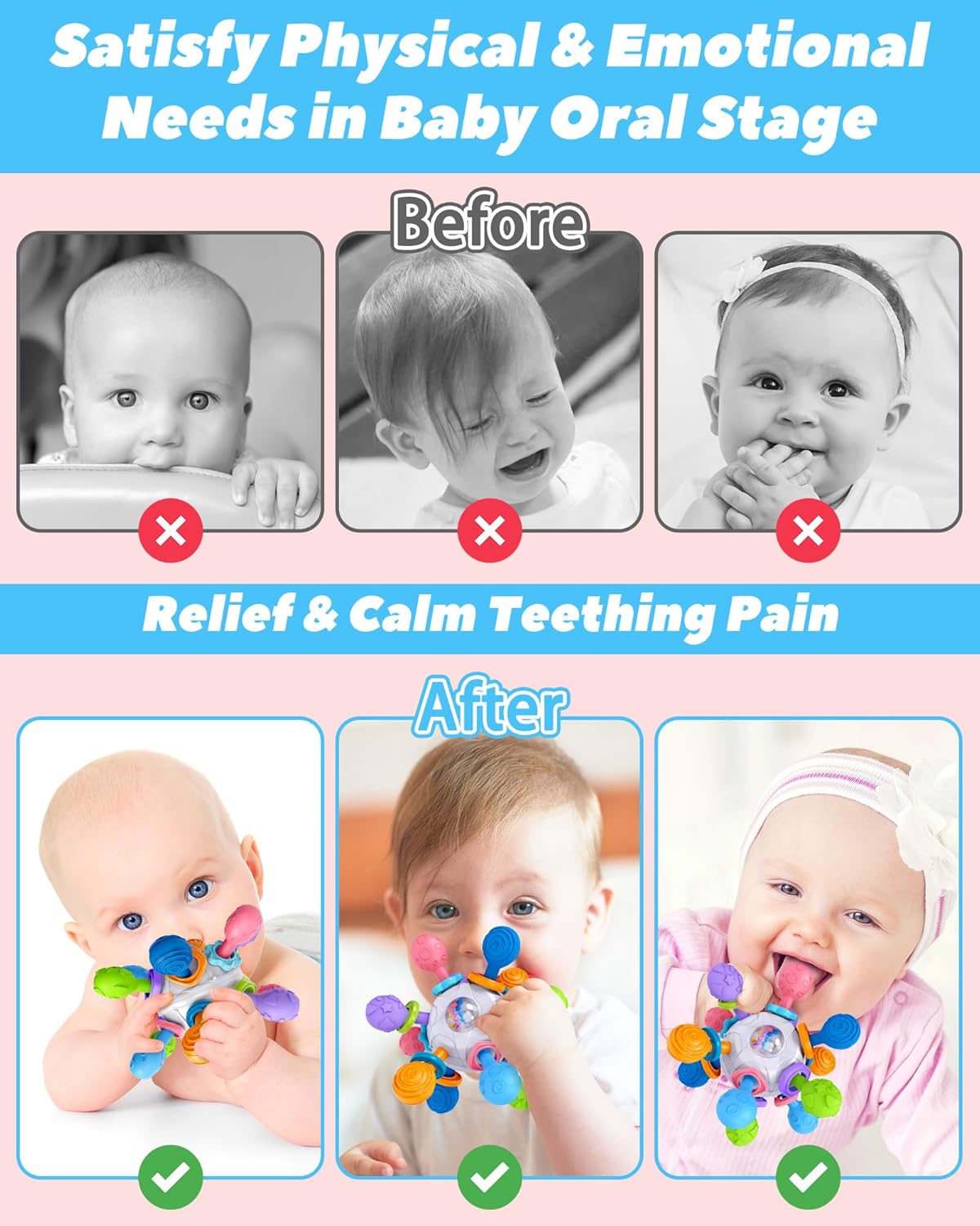 Newborn & Infant Great Gifts: When your baby starts sucking, you can choose our teething toys, which your baby can use safely without parental supervision. This baby toy is suitable for newborns aged 0-3, 3-6, 6-12 months. The ideal baby gift, stocking stuffers, easter basket stuffers for girls and boys, including birthday, Christmas, Thanksgiving, Easter, Halloween, and New Year’s gifts.