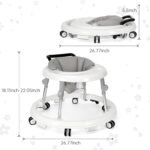 [Foldable storage]: Baby walkers have foldable support arms that can be easily folded without any tools. And no installation is required to use. At the same time, baby walker portable is small and easy to carry and store. Expansion Size: 25.2″(L)*18.11″(W) *”15.75-18.5″(H) for toddlers 7 to 18 months of age. Folded Size: 25.2″(L)*3.94″(H). Please confirm the baby’s height before purchase. It can support a 30-pound baby.