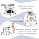 Baby Walker Foldable with 9 Adjustable Heights, Baby Walkers and Activity Center for Boys Girls Babies 7-18 Months, Baby Walker and Bouncer Combo with Wheels Portable Anti-Rollover