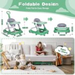 Baby Walker with Wheels 5 in 1 Foldable Activity Center with Mute Wheels Adjustable Heights Anti-Fall Push Walkers for Boys Girls Safe Infant Toddler Walker with Footrest for 6-24 Months