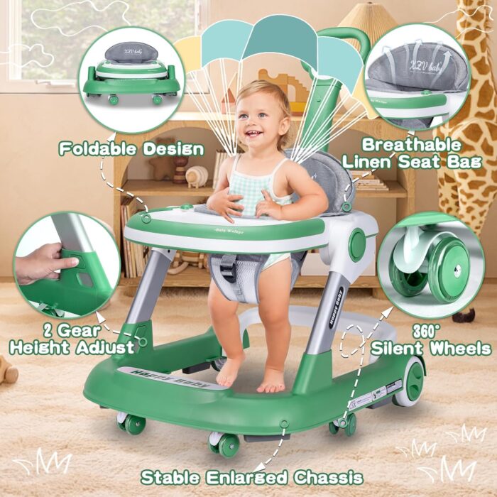 ????5-in-1 Multifunctional Baby Walker: This versatile walker adapts to your baby’s growth with five modes: infant seated walker, dining chair, push walker, high-handle stroller, and activity center. Designed for boys and girls aged 6-24 months, it provides the perfect support at every stage.