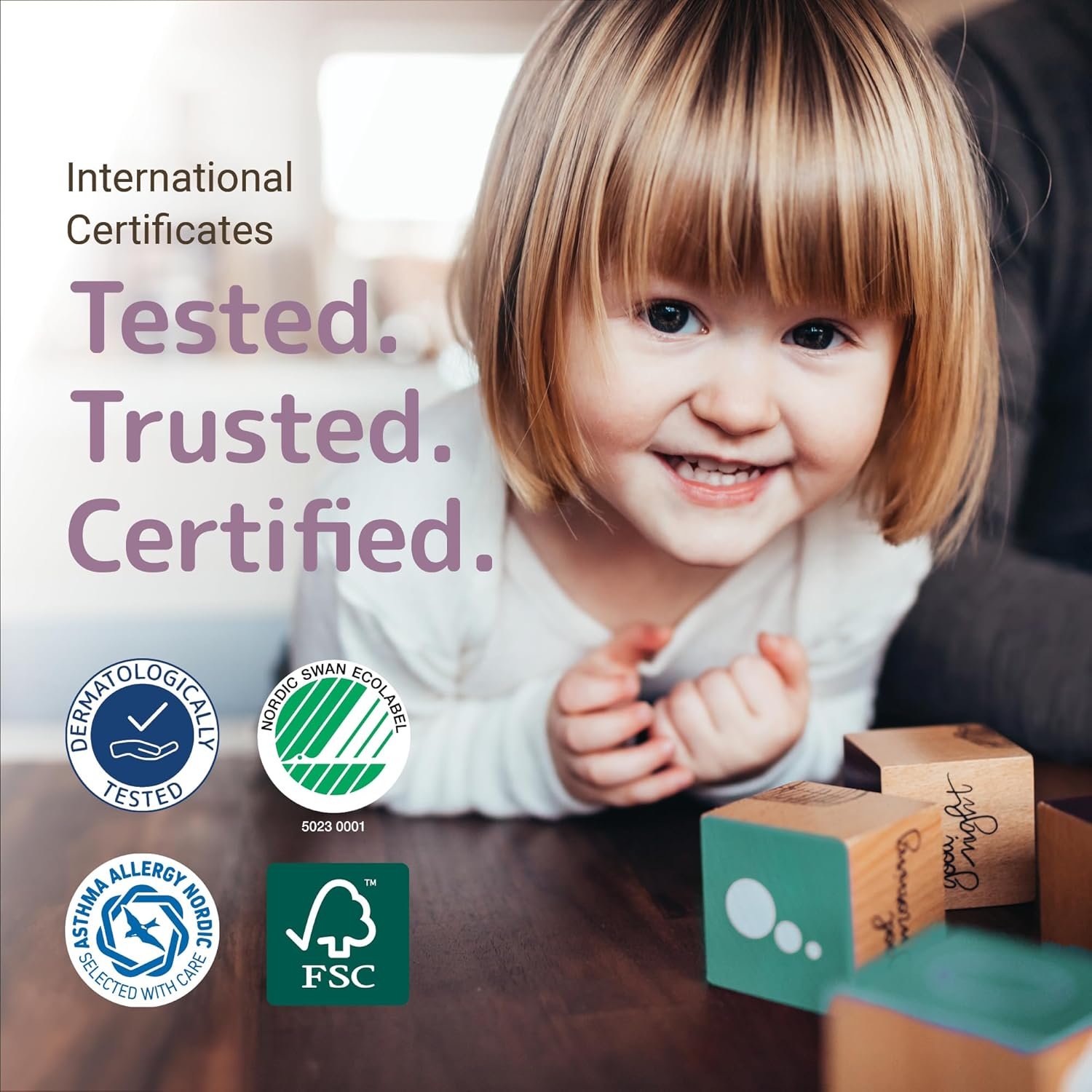 SKIN SAFE MATERIALS – free of harmful chemicals and all known allergens and the fluff pulp is made TCF (totally chlorine-free).