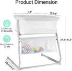Bassinet Bedside Sleeper, Baby Bassinets Higher Place on Bed, 5-Position Adjustment Baby Crib,Breathable 360° All-Around Mesh Sides Bedside Bassinet,Space-Saving Bedside Cribs with Height(37.4″-41.3″)