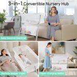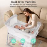 【5-Level Adjustable Height & Taller Design】Engineered with 5 height positions (24.5″-28.5″) – taller than 95% of bedside bassinets – this baby bassinet can be placed on top of the mattress on a bed for safe co-sleeping. Designed for parents 4’2″-6’2″ (covering 98% of adults per CDC data), it eliminates bending during midnight feeds/diaper changes. Ideal for C-section recovery.