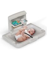WALL-MOUNTED CYLINDER CONTROL: Our wall-mounted design features a smooth cylinder control that allows parents and caregivers to easily open and close the changing table with one hand, reducing the difficulty of operation and improving the convenience of the whole process.