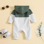 BemeyourBBs Newborn Baby Boy Clothes Color Block Long Sleeve Hooded Romper with Pocket Fall Winter One Piece Outfits