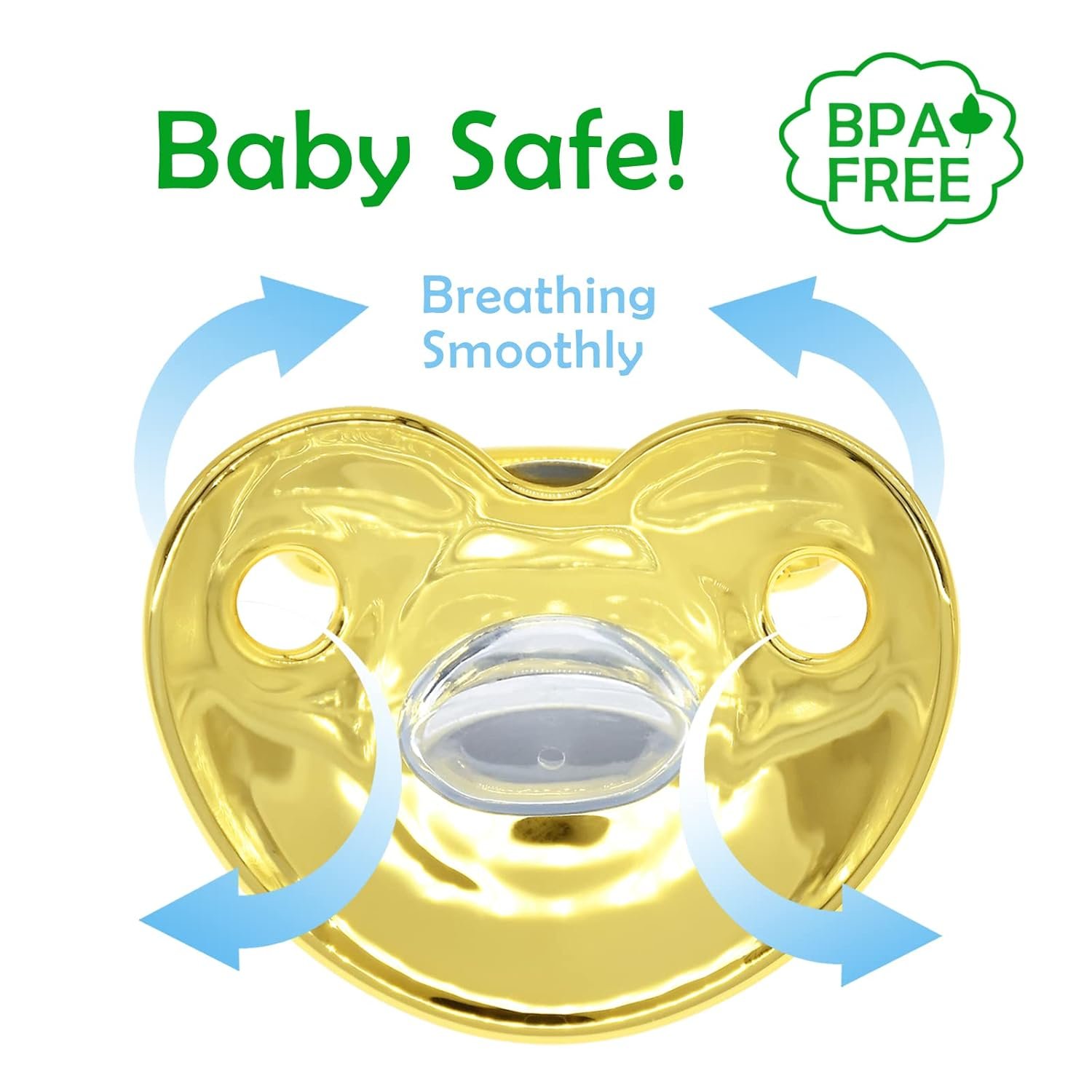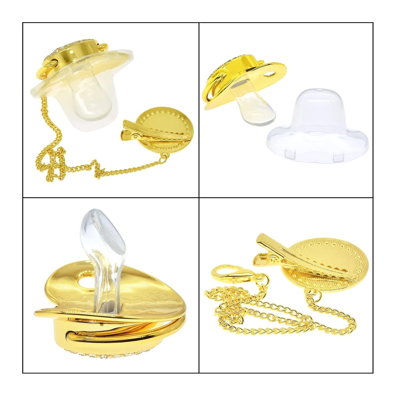 Light Bling With Cover: Bling Pacifier is ultra light soft, the surfaces are comfortable to mouth, So you can rest assured not to scratch child.After use, it can be placed in the cover for next time use, very convenient.We recommend that be used with adult supervision and that if you see child picking at or chewing on the rhinestones to discontinue use.Inserted with bling imitated crystal charms to elevate the attraction in vision,strongly suggested for Photography,not recommended for daily use