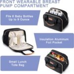 Large Capacity:Breastmilk Cooler Bag comes with an ice pack that can place up to 6 up to 9 ounce baby bottles. Size of baby bottle bag L 11″ X W 8″X H 8″. There are two elastic pouches for 2 wearable breast pumps in wearable breastfeeding pump bag front pocket
