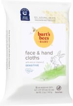 Burt’s Bees Baby Face & Hand Cloths, Unscented Cleansing Wipes for Sensitive Skin – 30 Wipes, Pack of 3