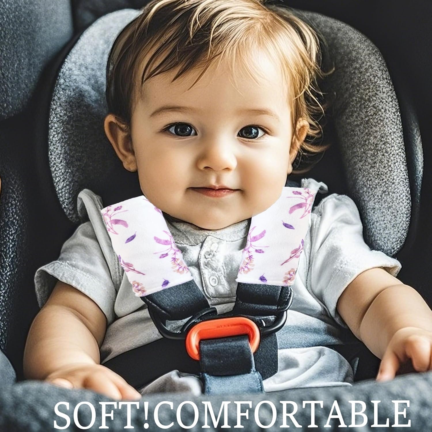 Carseat Strap Covers for Babies, Ultra Soft Double-Sided Use Shoulder Covers, 2 Pack Infant Seat Belt Covers for Car Seats/Strollers/High Chairs, for Baby Toddler Infant Boy Girl,Purple Floral