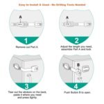 SIMPLE INSTALLATION – Installing these baby latches have never been this easy! Simply peel off adhesive protector and stick safety latches to cabinets. After this, peel off adhesive from lock and stick on cabinet, no drill tools needed!