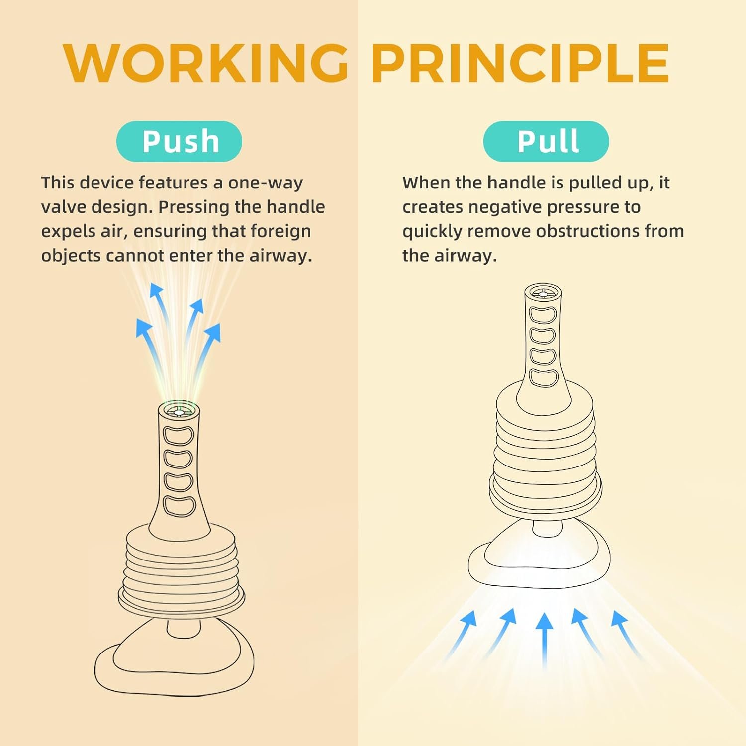 Xanili Choking Rescue Device is both safe and effective. It features a one-way valve design that ensures one-way suction, making it easier to quickly clear blocked objects from the airway.