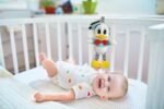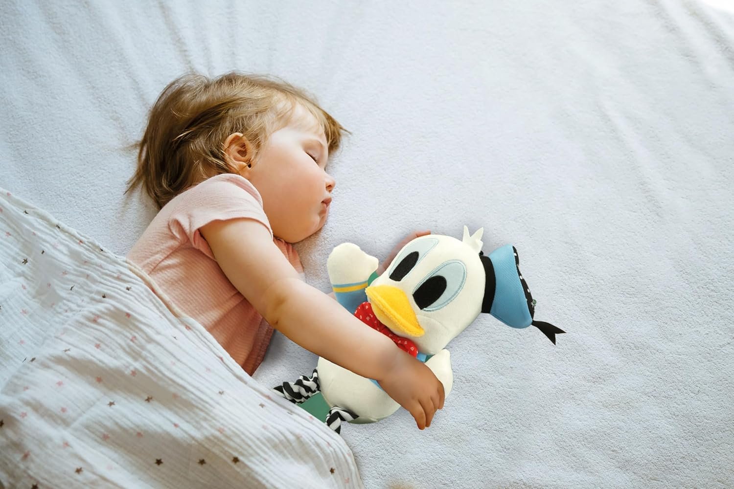 Equipped with a rattle, a squeaker in the stomach and elastic legs, Donald offers numerous activities that support sensory development. The feet of the plush toy are made of soft material and are ideal for the teething phase to relieve pressure on the gums and provide your baby with comfort.