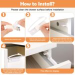 ???????????????? ???????? ????????????????????????????: The child safety lock latches are incredibly easy to install! Using strong adhesive tape, there’s no need for tools, magnets, or drilling. You can complete the installation in just a few minutes (please refer to the instructions). Installing it on the left or right side of the drawer will ensure safety for your little one. (Please wipe off any dust from the cabinet before installation.)