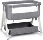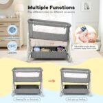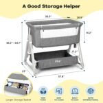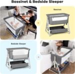 Cowiewie Bassinet Bedside Sleeper, Baby Bassinet with Adjustable Height & Angle XL Storage Bag & Breathable Mesh Bedside Bassinets for Baby, C-Section Friendly (Dark Gray