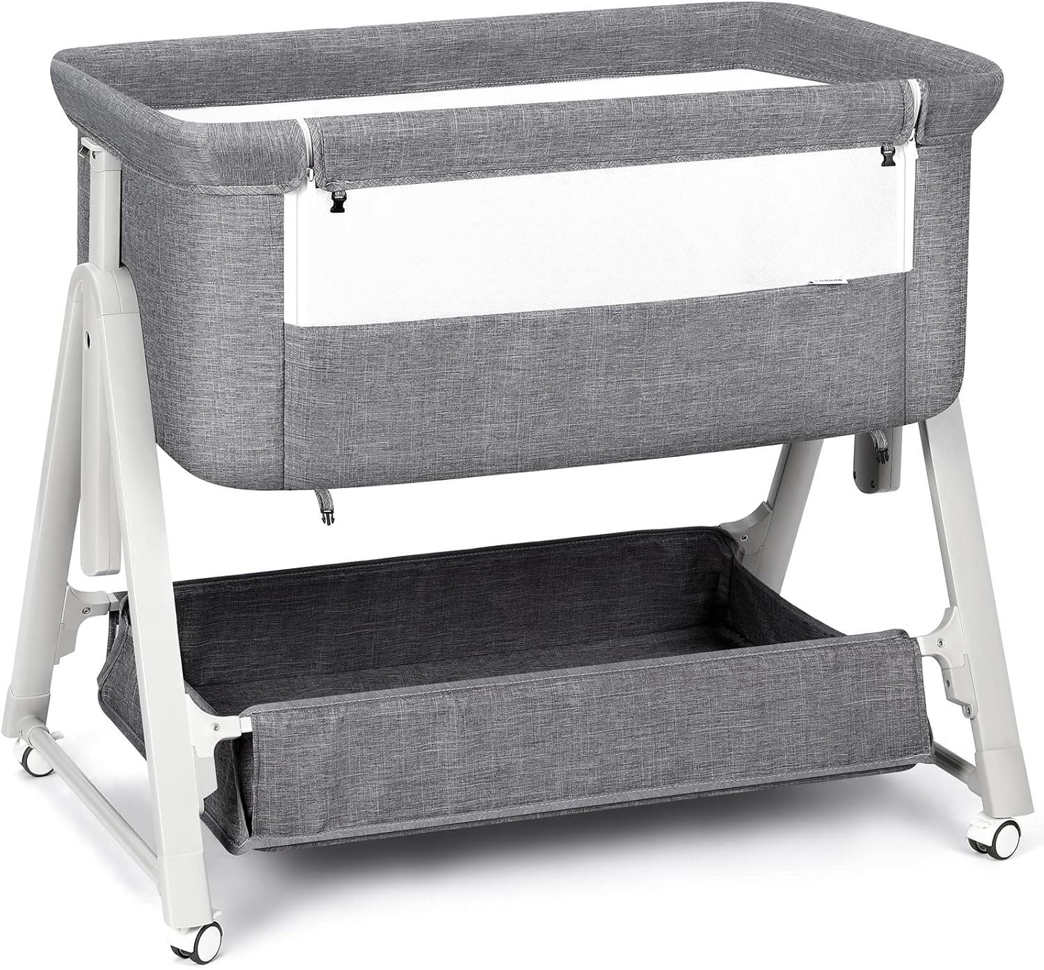 【Breathable 360° Mesh & Night Feeding Focus】Breathable 360° mesh walls ensure airflow and visibility. Side zipper allows quick access for nursing, soothing, or checking on baby without leaving bed.