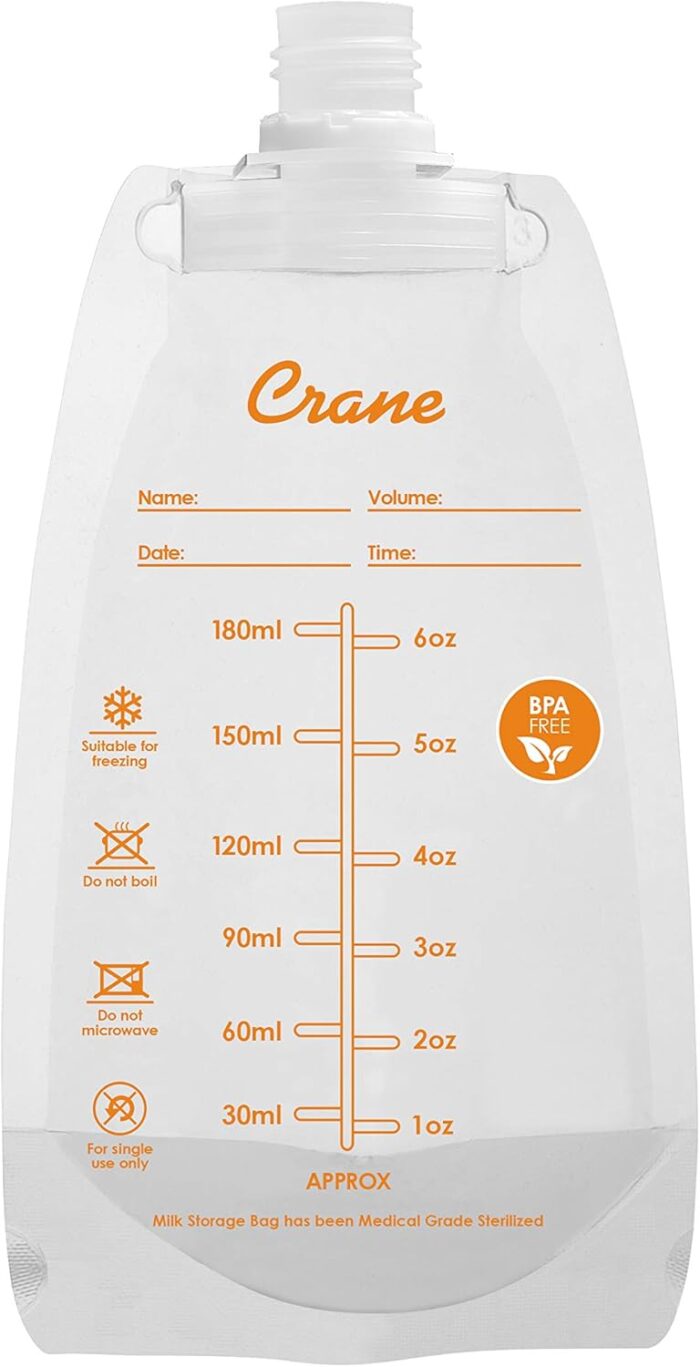 Collect, store, and even feed your baby directly from convenient single-use, Pre-Sterilized bags. The wide neck adapter also attaches to Crane Bottle nipples to feed your baby directly from the bag. No transferring of milk to bottle needed.